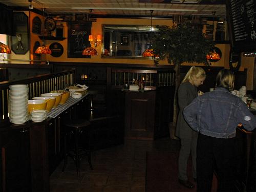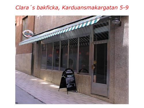 Clara´s bakficka är en liten pub, ca 25 sittplatser, på "övre" planet plus några platser till höger om bardisken. Fördelen är att vi blir "ensamma" i lokalen (uppför vi oss snyggt kan det kanske bli ett stamställe...)